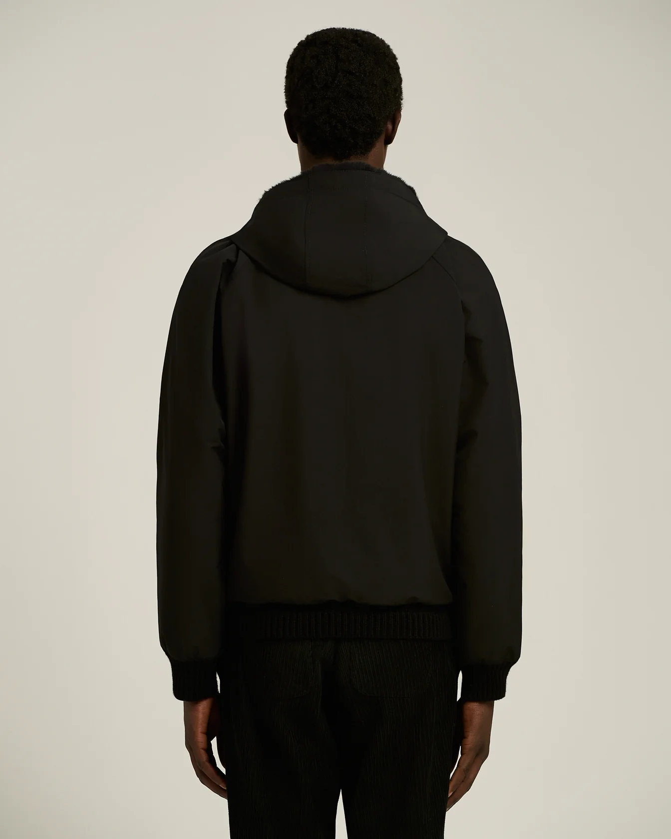 The perfect balance of technique and style, this hooded jacket offers a contemporary take on winter outerwear. Made from a high-quality wool and technical fibre blend, it provides excellent protection without compromising on lightness. The fur-lined interior offers warmth and softness. The sleek silhouette is enriched with practical features such as a knitted hem and cuffs, two-way zip fastening and an adjustable hood. A strong, characterful garment designed to accompany the modern man with elegance, even on the coldest days.