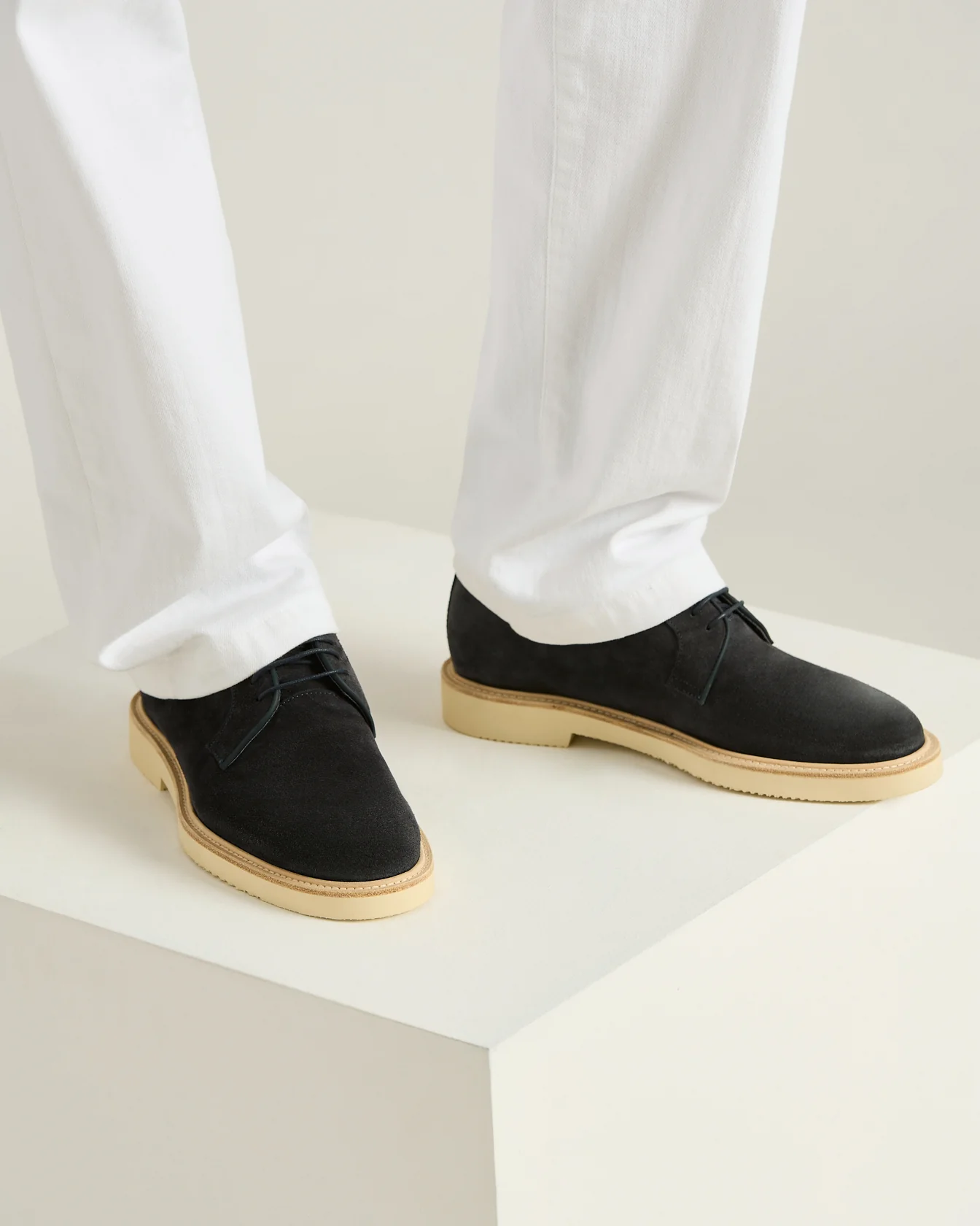 The Kiton Derby shoe expresses sophisticated understatement reinterpreted with a contemporary spirit. Crafted from suede calfskin with a soft, even texture, it features a clean silhouette that highlights the purity of the lines. The light-coloured rubber sole enhances functionality, offering lightness and a secure stride without compromising elegance. The calfskin lining ensures immediate comfort and a natural fit. Designed for those who move through the city with dynamism, it pairs effortlessly with both tailored suits and more informal looks, gaining character over time.