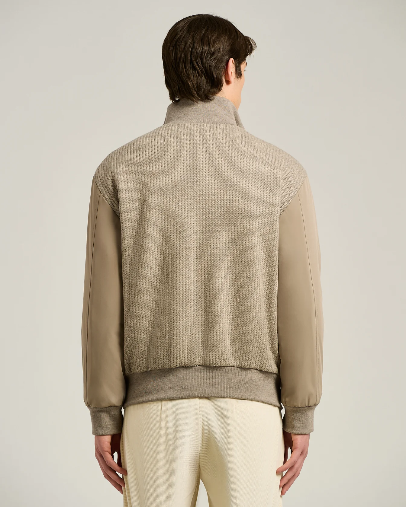 BOMBER IN TAUPE WOOL BLEND AND TECHNICAL FABRIC