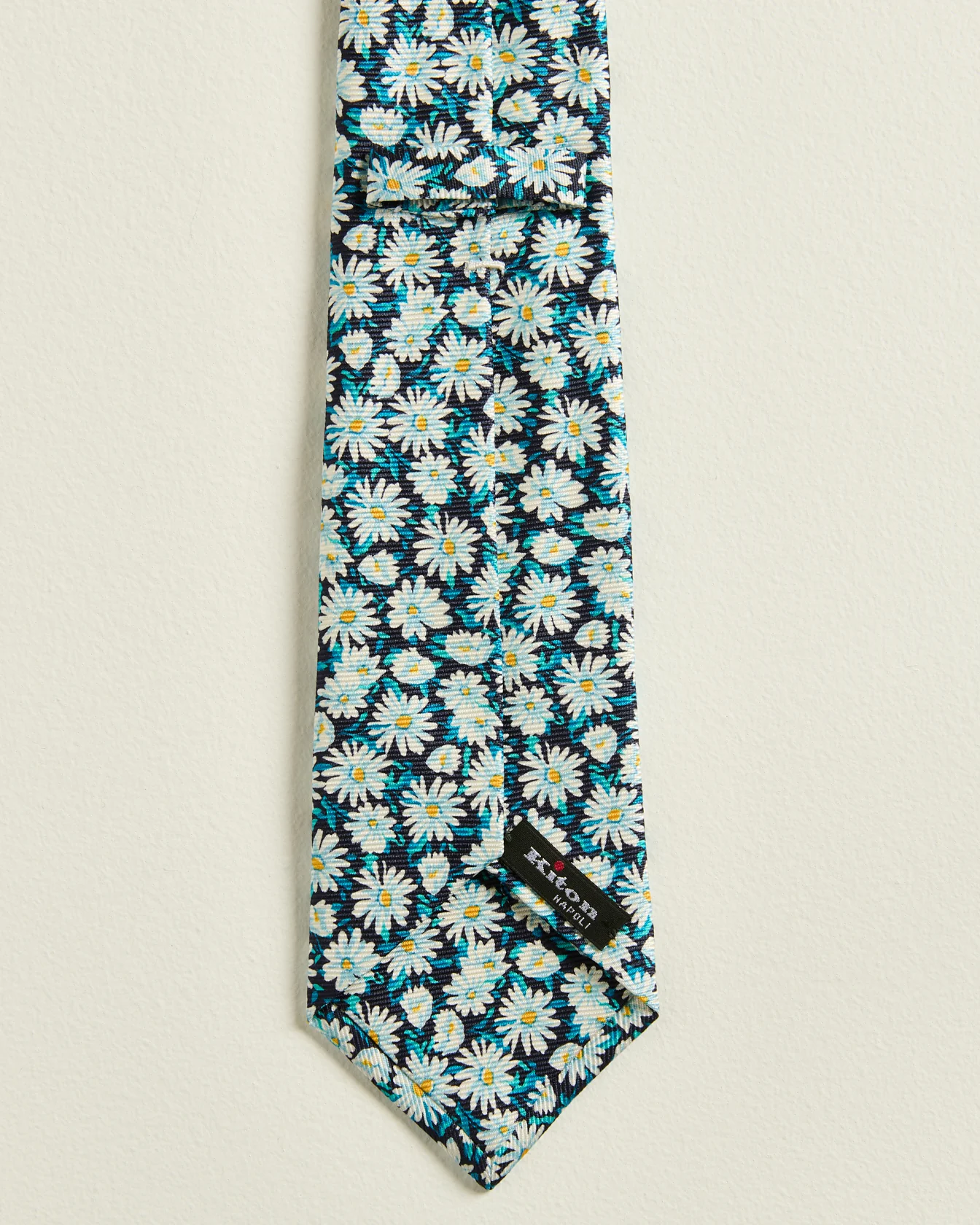 Pure silk tie with sophisticated micro floral pattern, worked entirely by hand. Length: 1.48 m - Width: 8.5 cm.